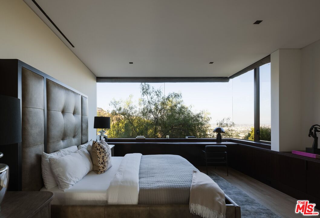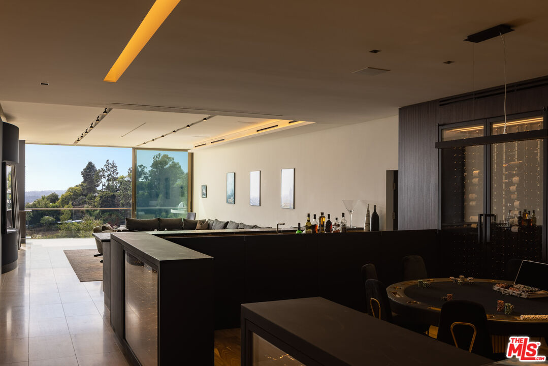 This extraordinary estate at 1305 Collingwood Place offers an unparalleled blend of sophistication and luxury. Spanning 11,800 square feet, the estate has 6 spacious bedrooms and 7 elegantly designed bathrooms, providing a haven of comfort and style. The home's design emphasizes seamless indoor-outdoor living, highlighted by an automatic retractable glass wall that opens to reveal breathtaking views from Downtown Los Angeles to the Pacific Ocean. The expansive deck serves as an outdoor oasis, complete with an infinity-edge pool, spa, fire feature and a barbecue area ideal for entertaining. The master suite, located on the second level, is a serene retreat offering a private balcony with sweeping views, luxurious soaking tub, and dual walk-in closets. Exclusive amenities abound throughout the estate, including a wine cellar, media room, state-of-the-art gym, as well as spa and sauna with salt walls for ultimate relaxation. The home is fully and seamlessly controlled by Savant Technology. Parking is effortlessly accommodated with a 20-foot, 3-car garage featuring a lift to accommodate up to 6 vehicles. With its blend of opulence and innovation, this estate offers a rare opportunity to experience the finest in Southern California living.